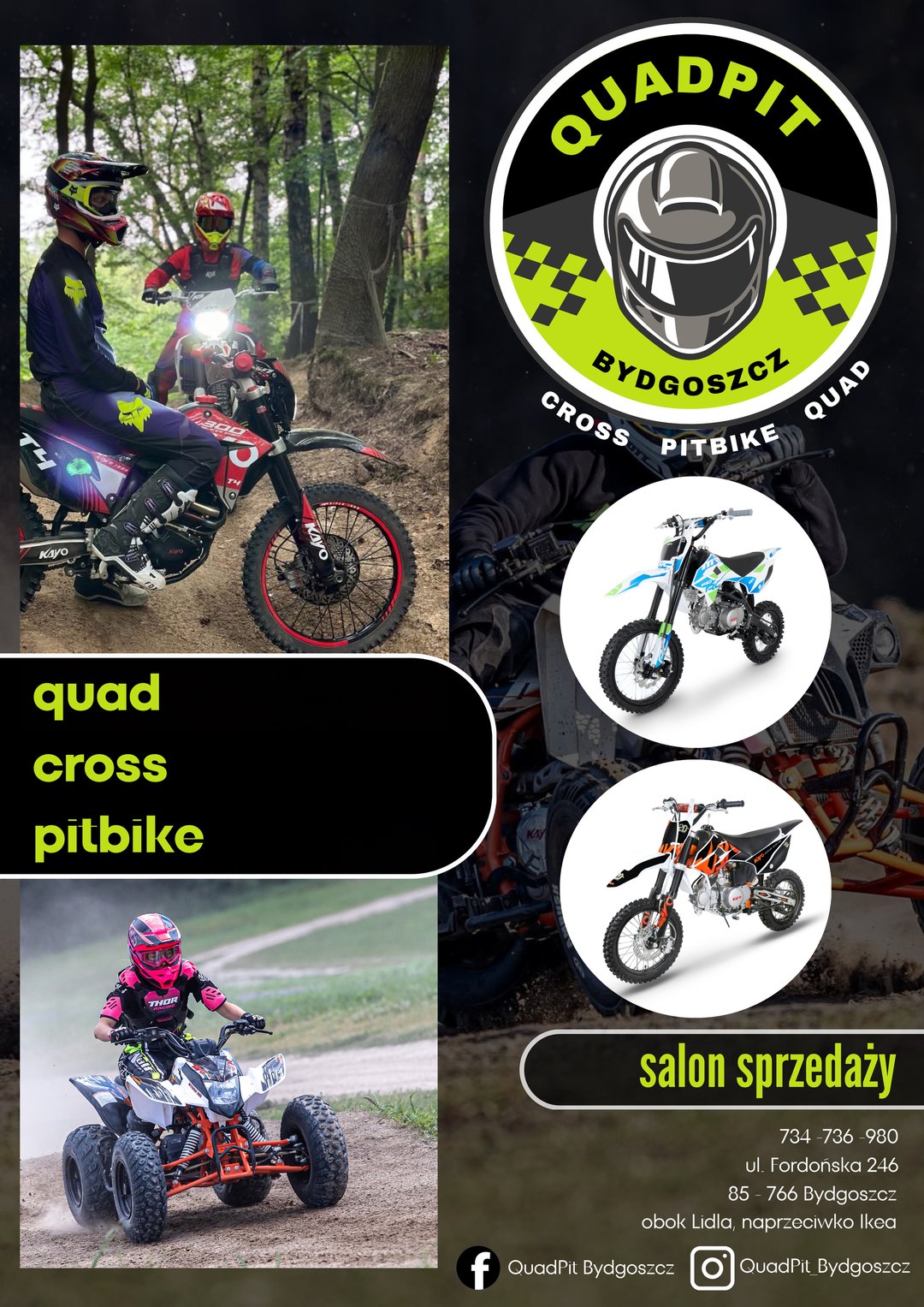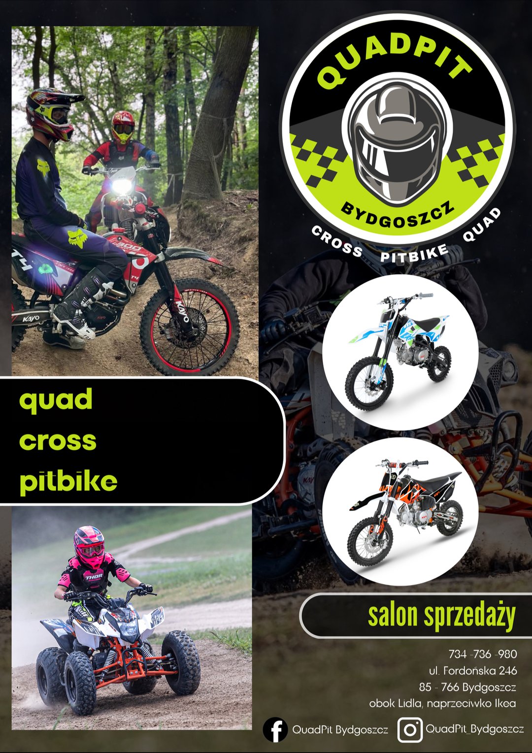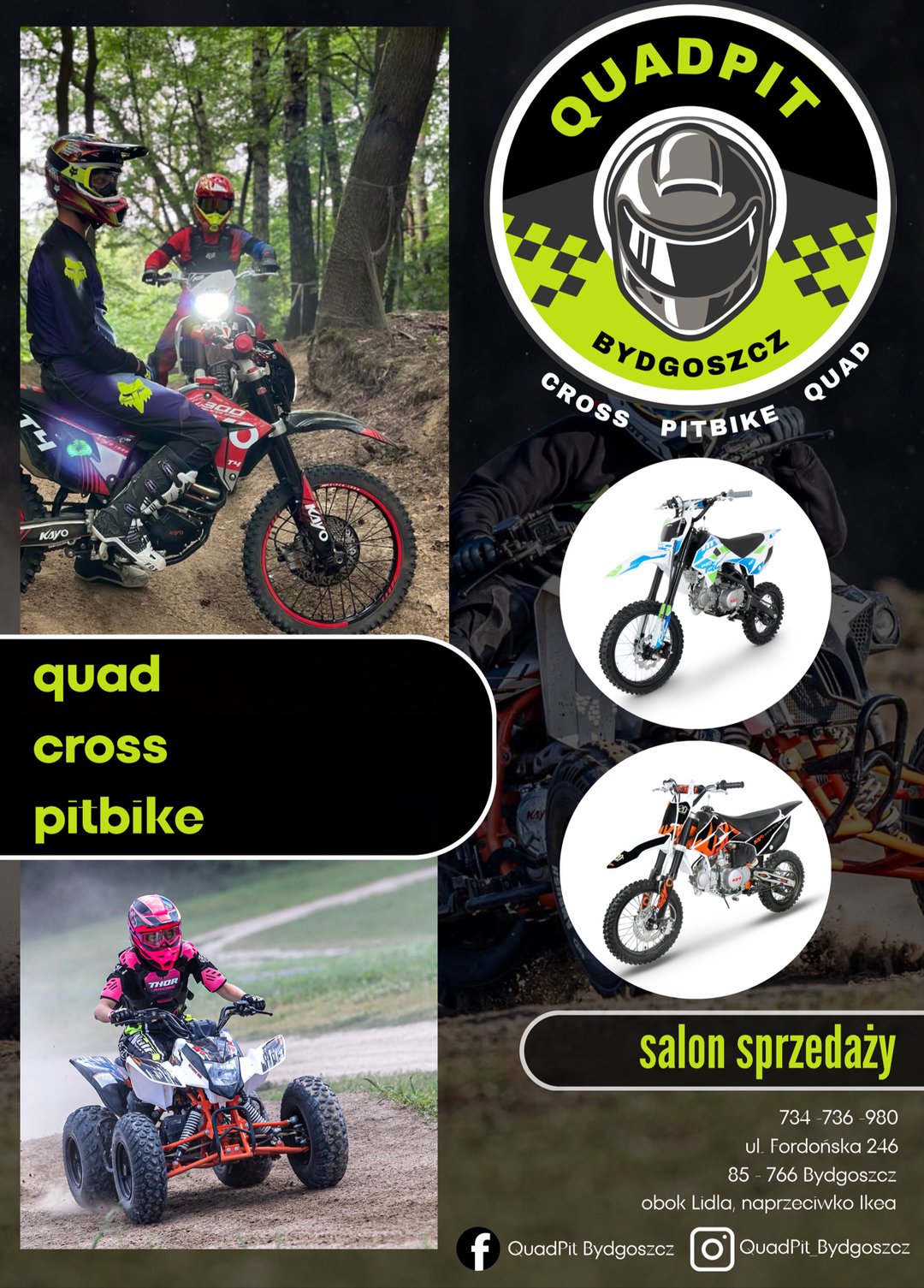 QuadPit Bydgoszcz - KAYO, MRF, YCF, PITGANG (Crossy, Pitbike'i, Quady) - sklep motocyklowy